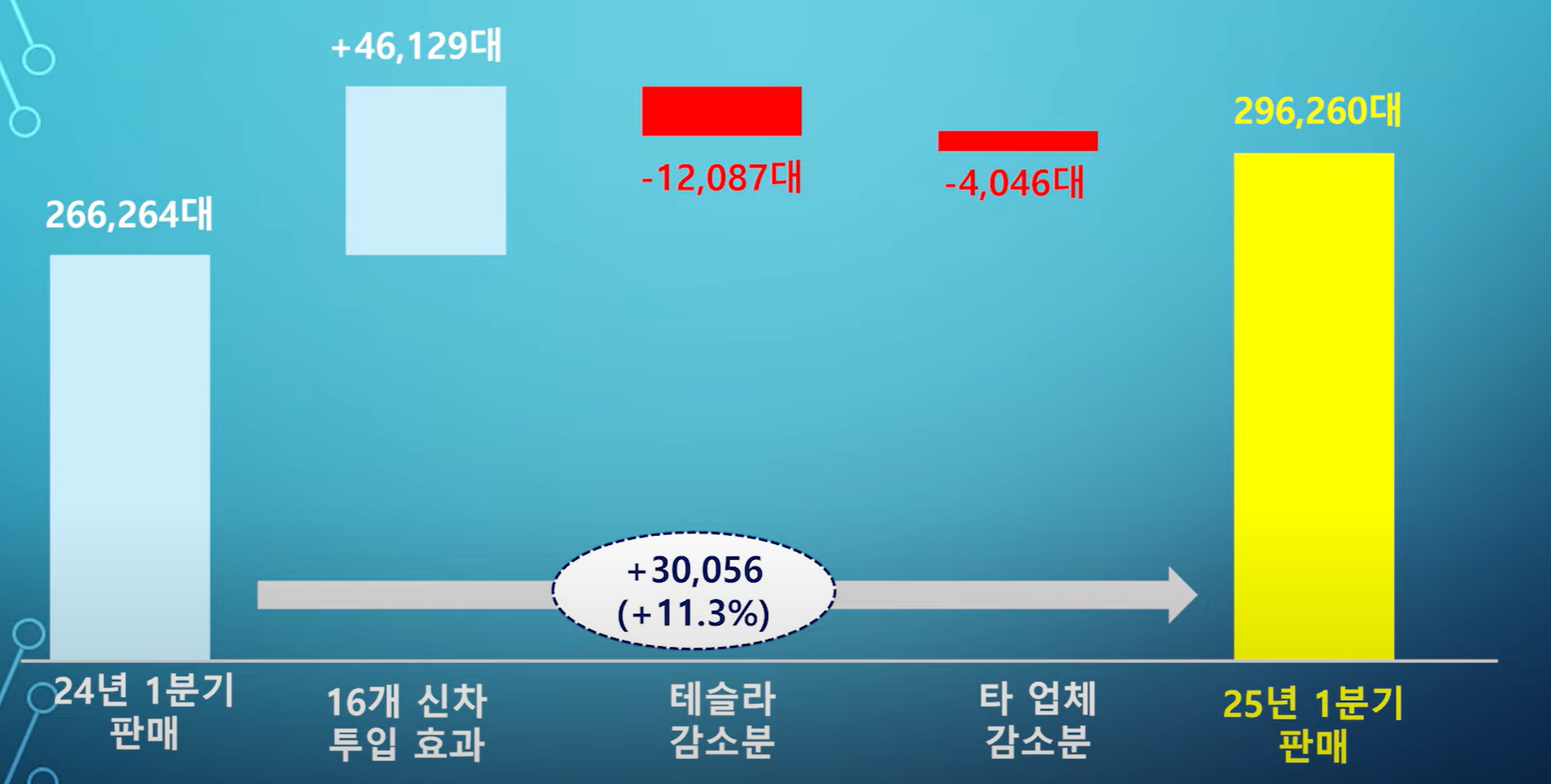 이 대수는 테슬라의 12,087대 감소와 기타 업체들의 4046대 판매 대수 감소를 메꾸면서 전년비 증가하는 큰 요인이 되었습니다.