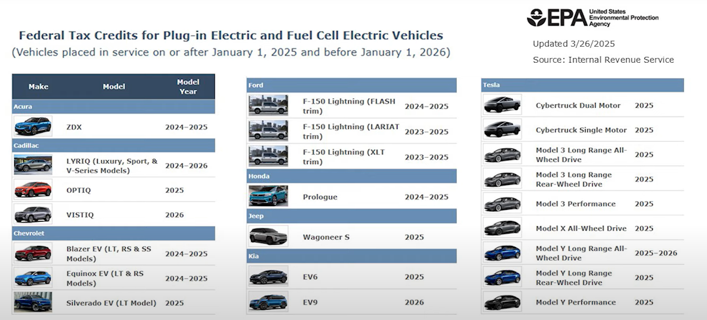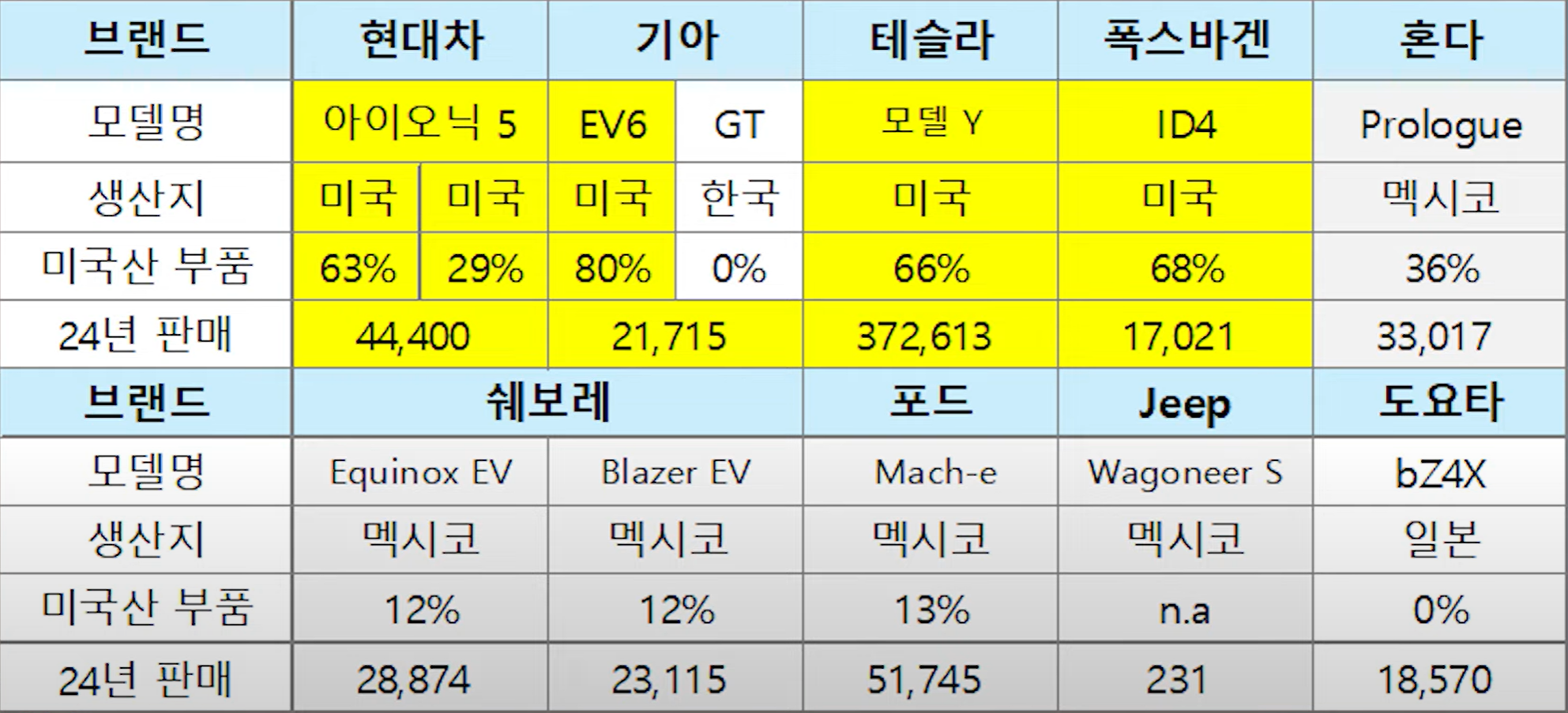 미국 테슬라와 빅 3 차종 일부와 기아 EV 6, 혼다의 Prologue 정도만이 그 수혜를 받고 있습니다.