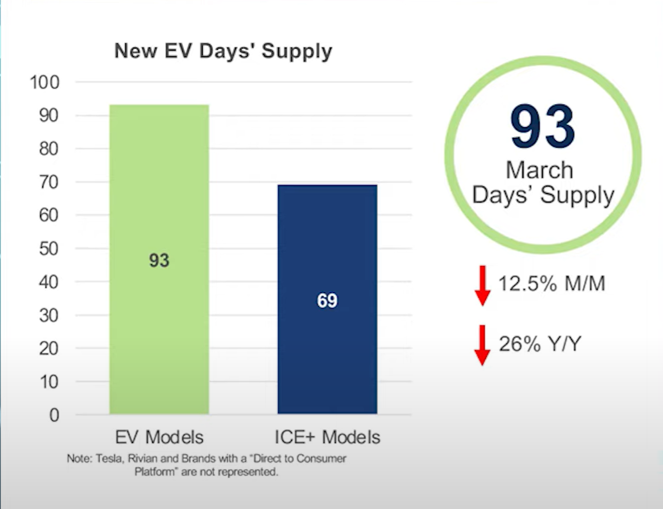 이러한 강화된 판촉으로 전기차 업체별 평균 재고는 줄어들고 있지만 여전히 내연기관차에 비하면 24일이 많은 93일이 되고 있습니다.