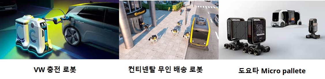 세계 자동차 회사들이 앞다퉈 로봇 개발에 나서고 있다. 포드, 폭스바겐, 도요타, 혼다, 닛산 등 세계 완성차 업체들은 공장에서 조립을 돕는 자동화 로봇은 물론 부품 운송, 라스트 마일 물류, 매장 안내 등 다양한 분야에서 로봇을 활용하고 있다.