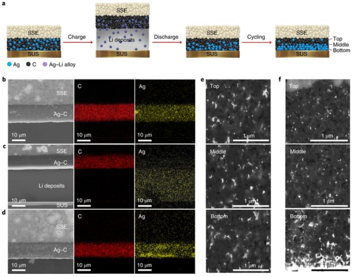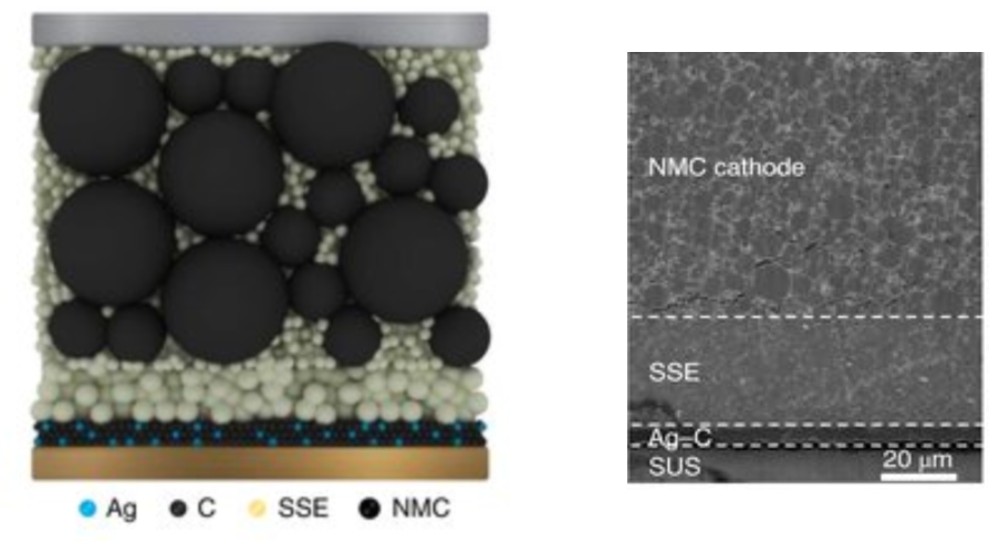 삼성은 은나노 탄소 복합 전극을 사용하여 리튬 메탈을 사용하는 전고체 배터리의 문제인 리튬 덴드라이트 문제를 해결하는 새로운 해결책을 제시하였다. 1000 사이클의 수명을 달성하였는데 황화물계 전고체 배터리에서는 매우 이례적인 결과라고 할 수 있다. 충방전 능력이 더 개선되어야 할 것으로 보이고 2층으로 제작한 적층수를 높이는 작업이 필요할 것으로 보인다. 최근 Quantumscape는 10개의 cell을 적층 한 결과를 보여주고 있고 Solid power의 경우에는 22개의 cell을 적층하고 있다.