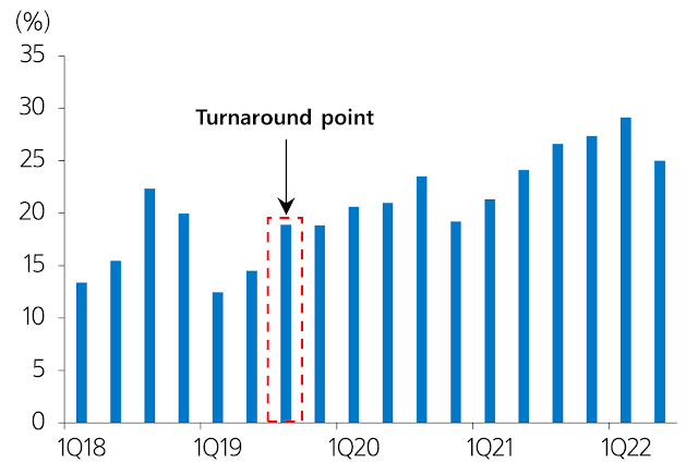 테슬라가 흑자 전환한 것은 누적 판매 대수가 100만대에 도달하던 2019년 3분기로 이 시기부터 Big data의 가치와 소프트웨어 기술의 선순환이 이뤄지기 시작했고 매출 총이익률은 매 분기마다 상승하였다.